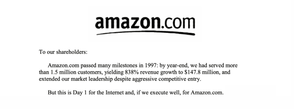 It started with his 1997 shareholder letter and is now the company culture at Amazon.